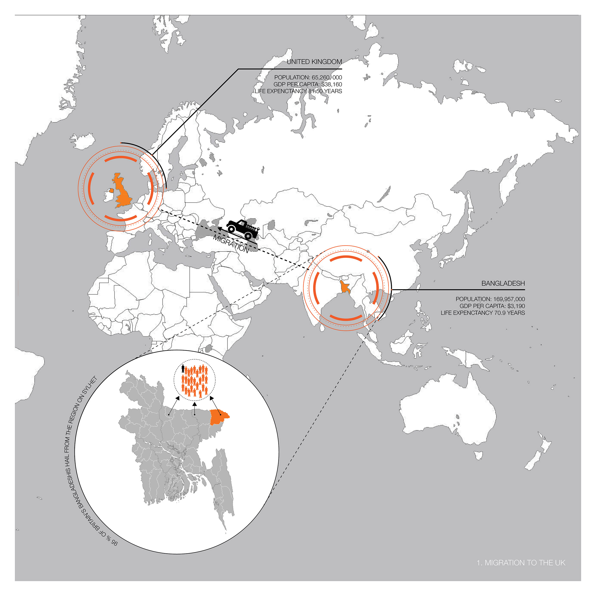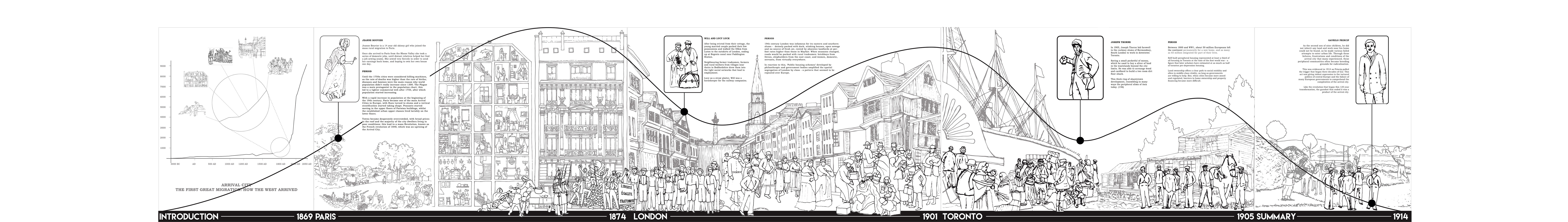 The process of arrival and migration can be a subject that is heavily reliant of statistics, reducing human migration and those involved into a series of numbers, graphs and charts. Through the narrative of migration the stories and experiences ranging from the French Revolution to WW1 can be explored: what happens when migration is unsuccessful after multiple failed attempts to integrate into the established city. These narratives map out key themes that we then explored further through our research such as physical characteristics of the arrival city, creation and ownership, cultural integration and vulnerability of arrivals.
