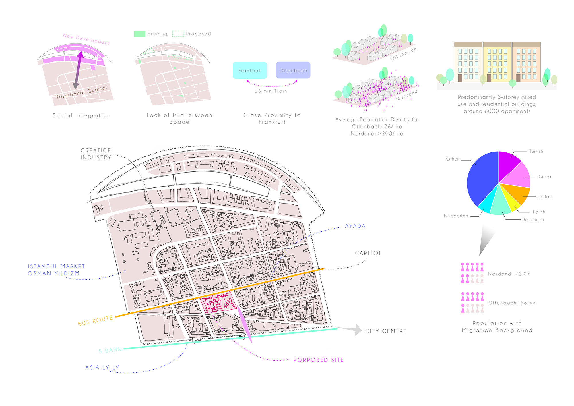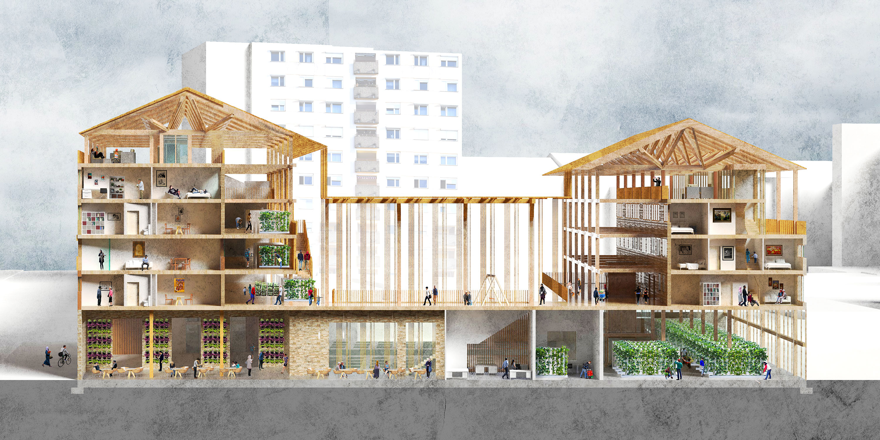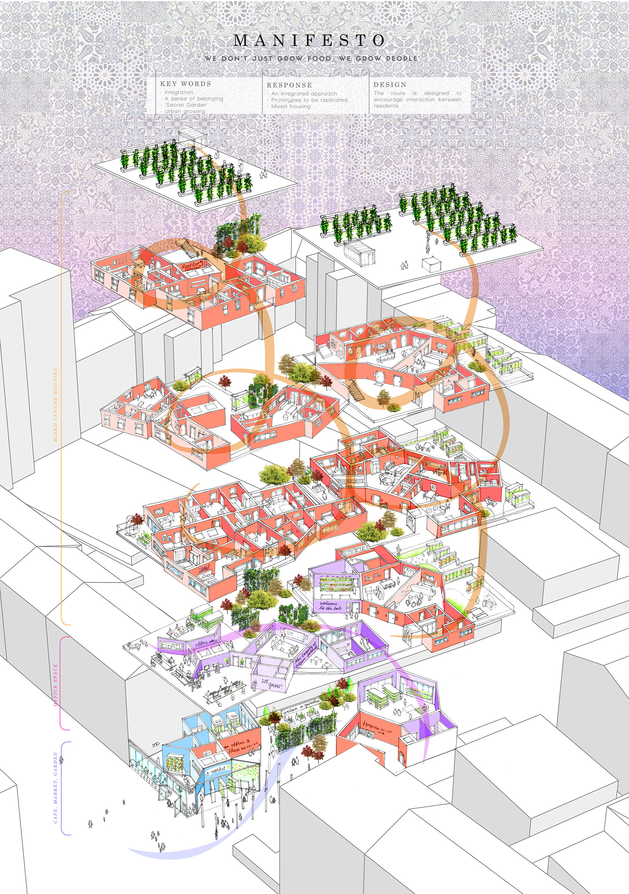Inspired by this quote during a visit to the Loughborough farm in London, this housing scheme aims to bring a new and sustainable lifestyle to the city of Offenbach. Including a public growing courtyard and private vertical growing plots, residents and the wider community are all welcome to get their hands on an activity that bring people closer together. It is especially designed as a tool for social integration especially for new immigrants and the established community, in hope of becoming a thriving and vibrant residential quarter.