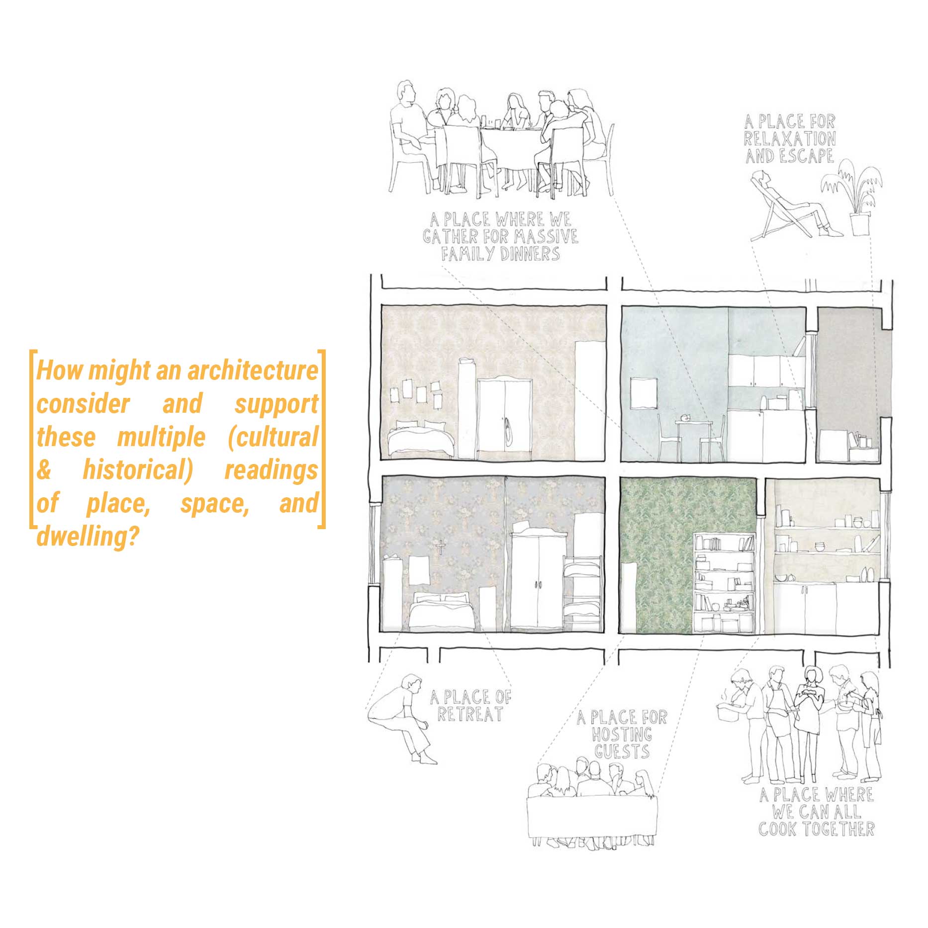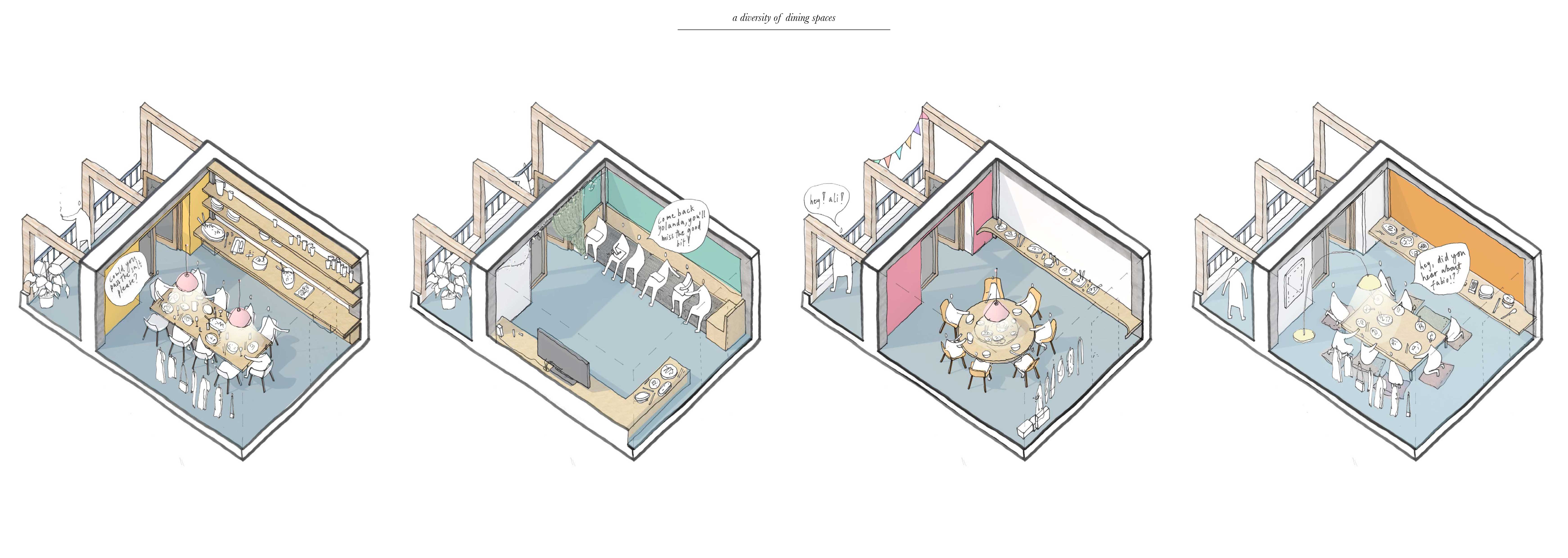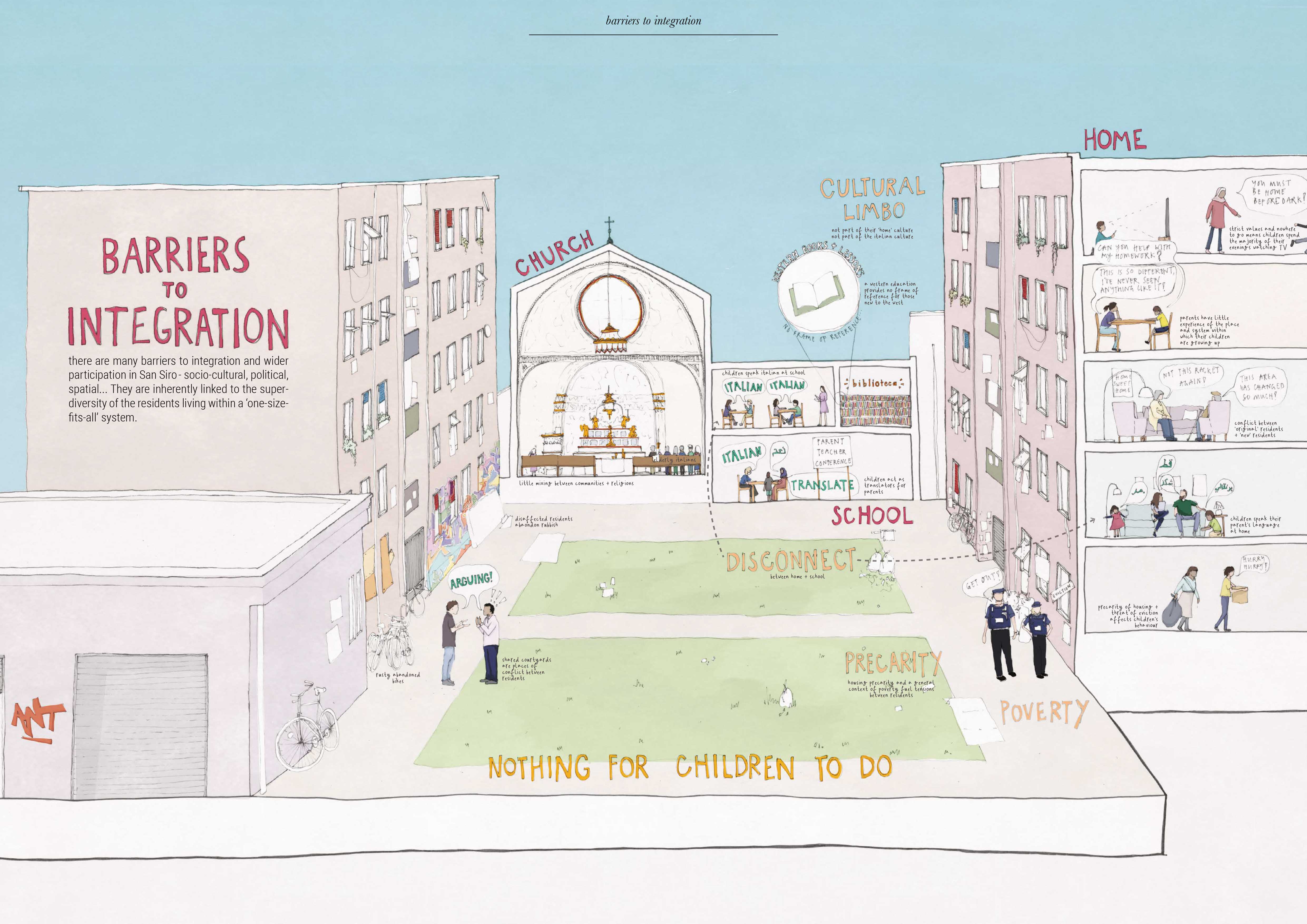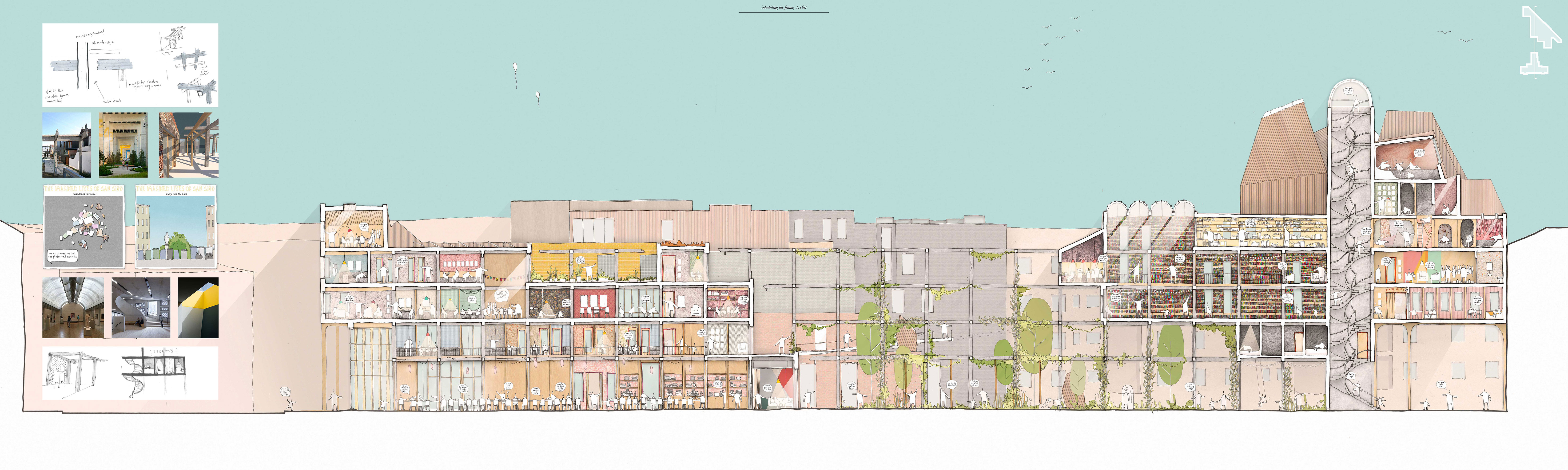 Musing on ‘everydayness’ and the squeezed modernist space standards underpinning San Siro, the project speculates on the creation of a new ‘neighbourhood luxury’; taking the functions of the everyday and elevating them to become spatially and temporally luxurious. Drawing from the context, three forms of luxury are conceptualised – dining, bathing, and imagining – each interpreted in multiple forms of private, semi-private, and collective luxury. These begin to alter the rigid urban grain of San Siro, deconstructing and reinhabiting a pair of concrete frames, and redefining a new street edge – announcing the gift of time and space for the everyday back to the residents of San Siro.