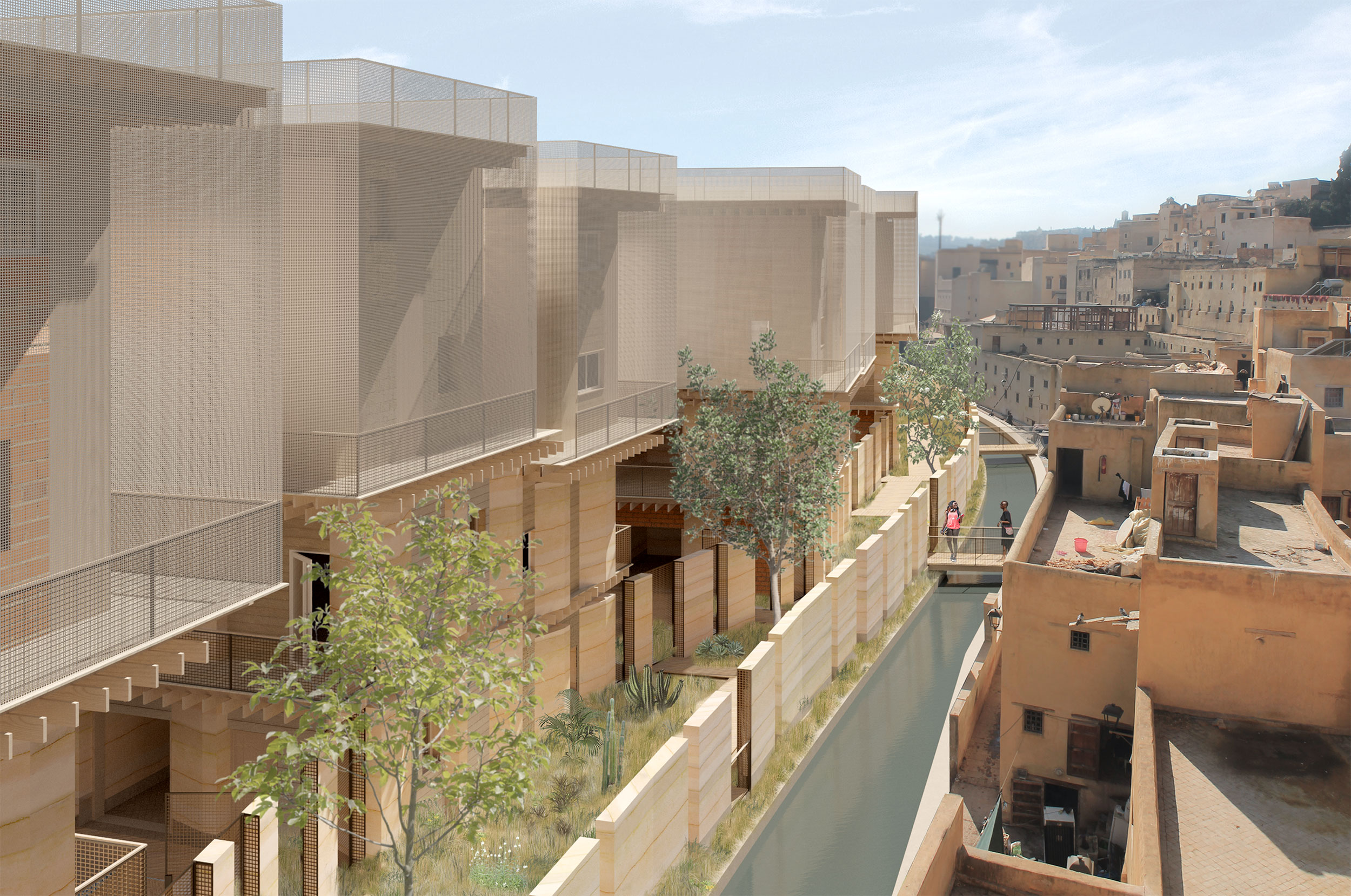 The project firmly roots itself in its Moroccan context through local and found material use and a reinterpretation of traditional courtyard typology.