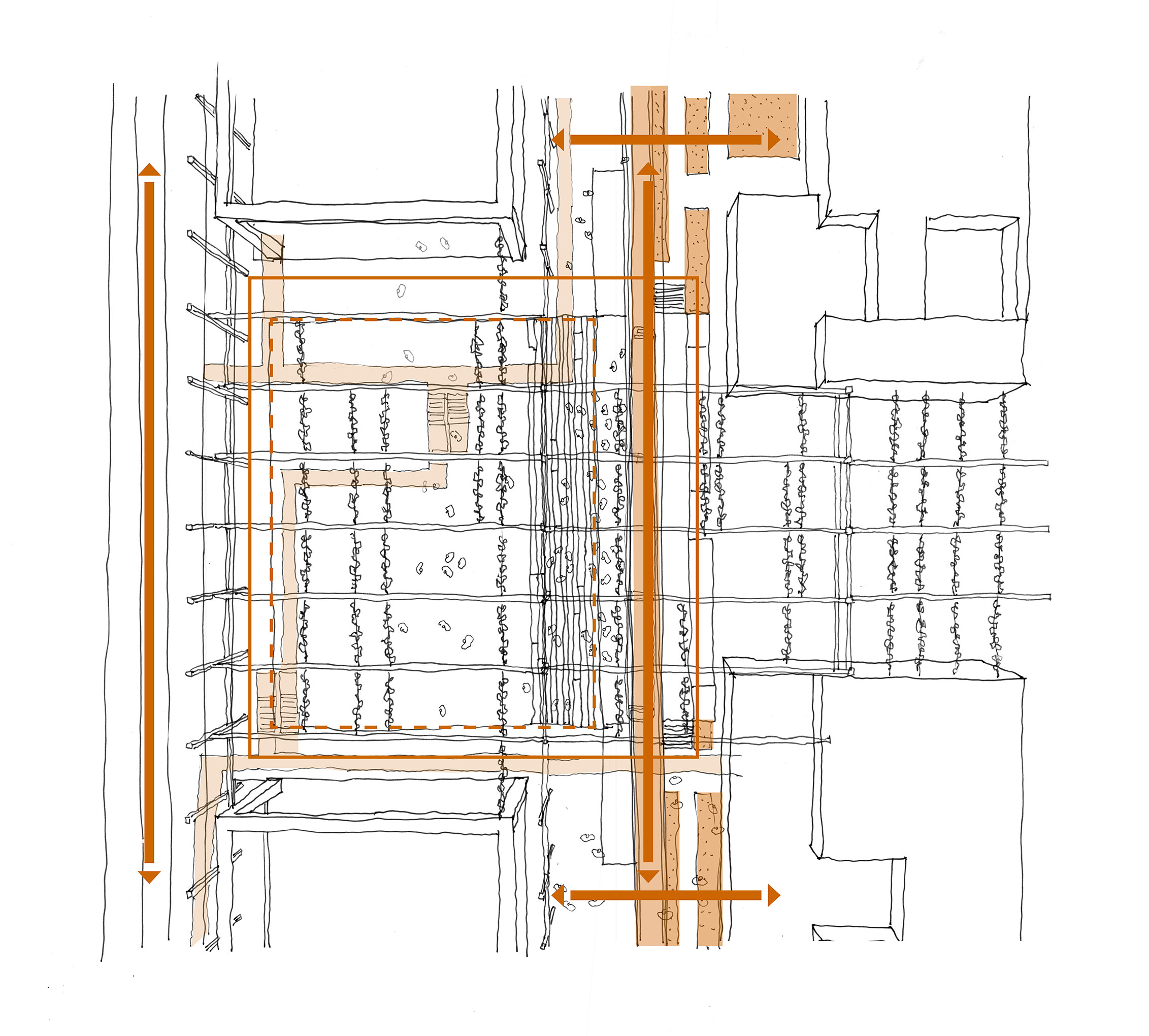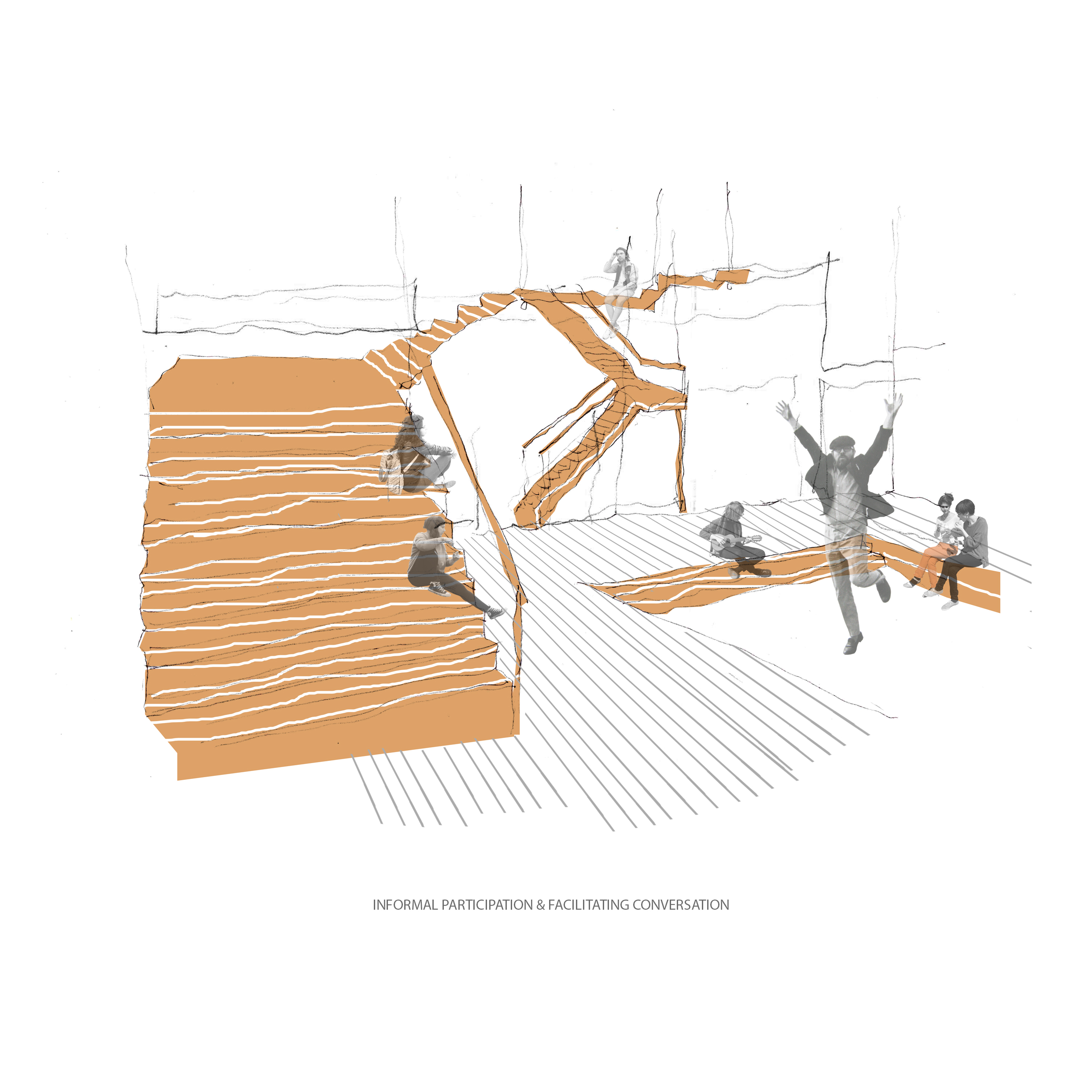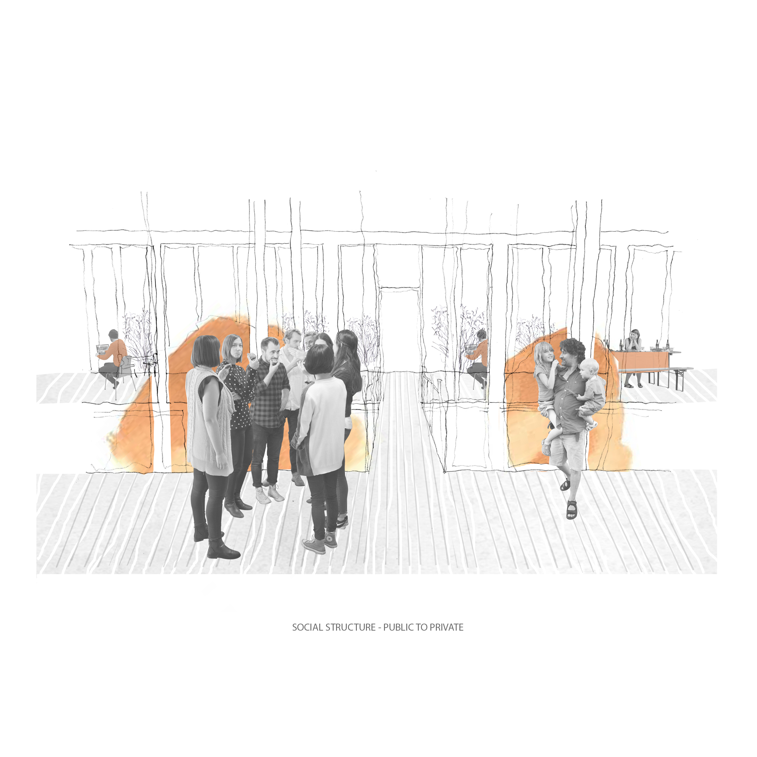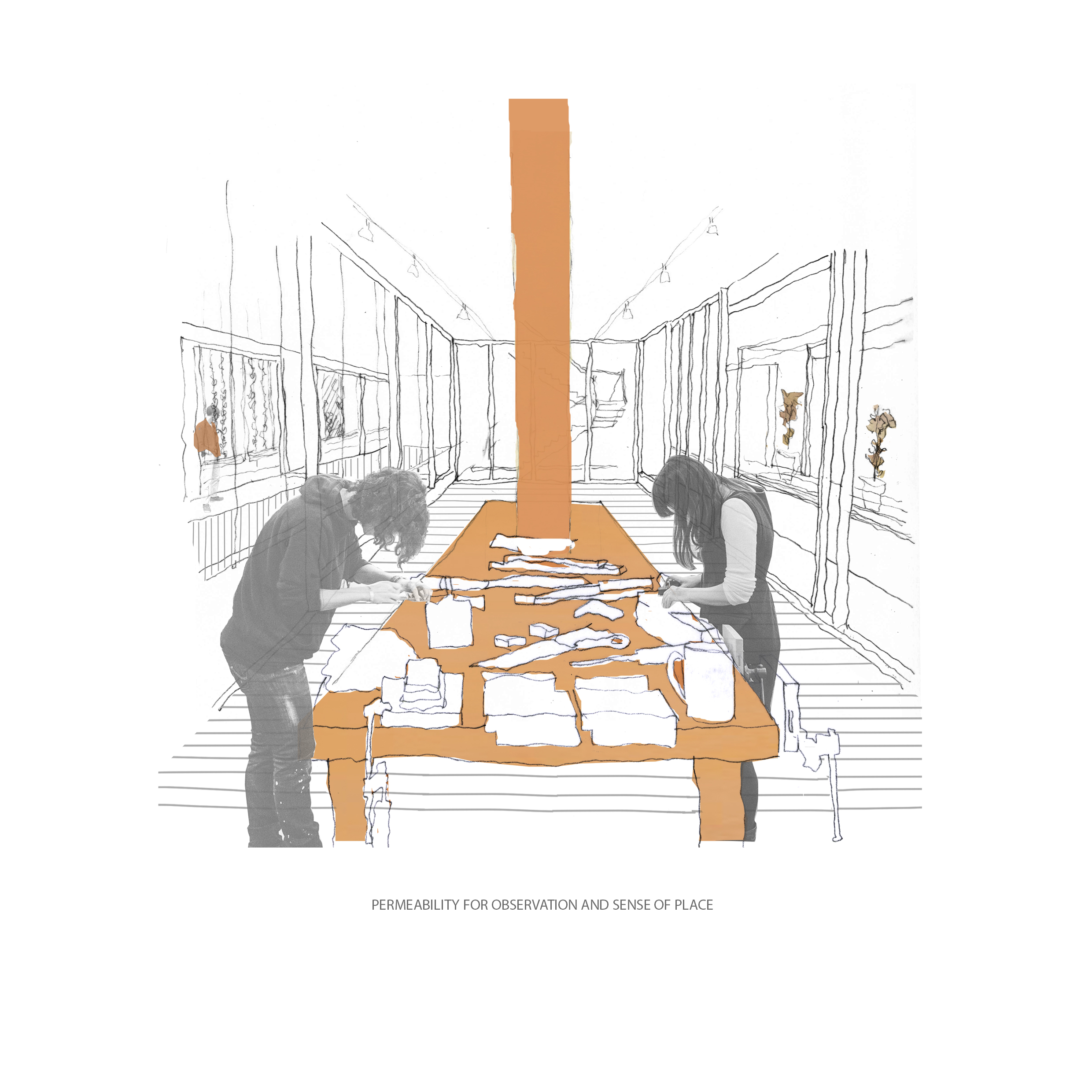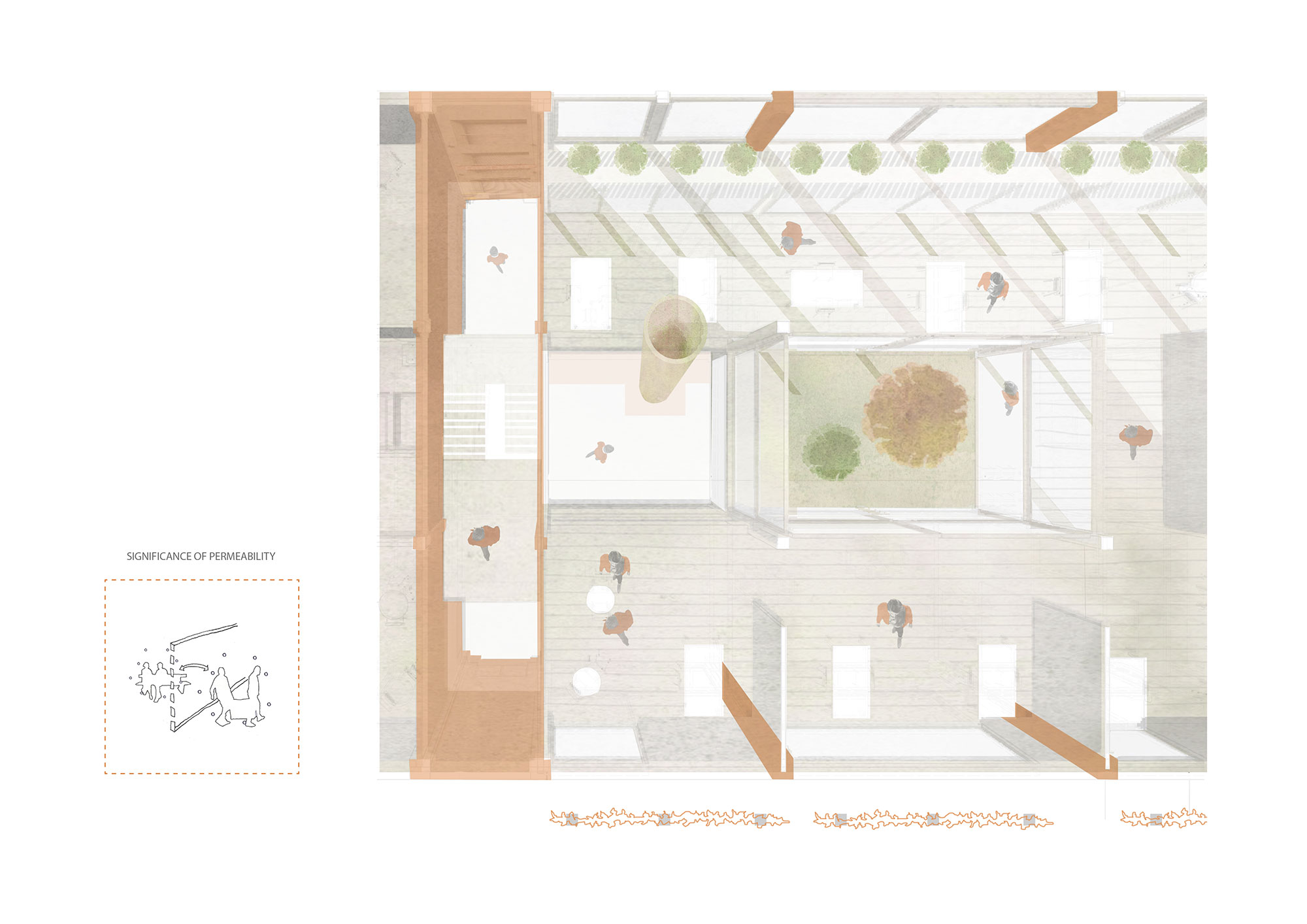 The project uses entrepreneurship and micro industry as an engine of integration by providing a platform for skill, language and economic advancement. Aiming to tackle social barriers to integration through participation by providing places for different types of people to meet which encourage communication and cultural exchanges. A place for refugees, migrants and non-migrants, for the 60 minute engager, the 6 month engager and the 6 year engager in order to maximise interaction and transition. Key themes of permeability, diversity and a spectrum of spaces, derived from research into a guidance framework for the transformation of vacant spaces into places which would aid the integration of migrant communities, informed key programmatic and architectural approaches.