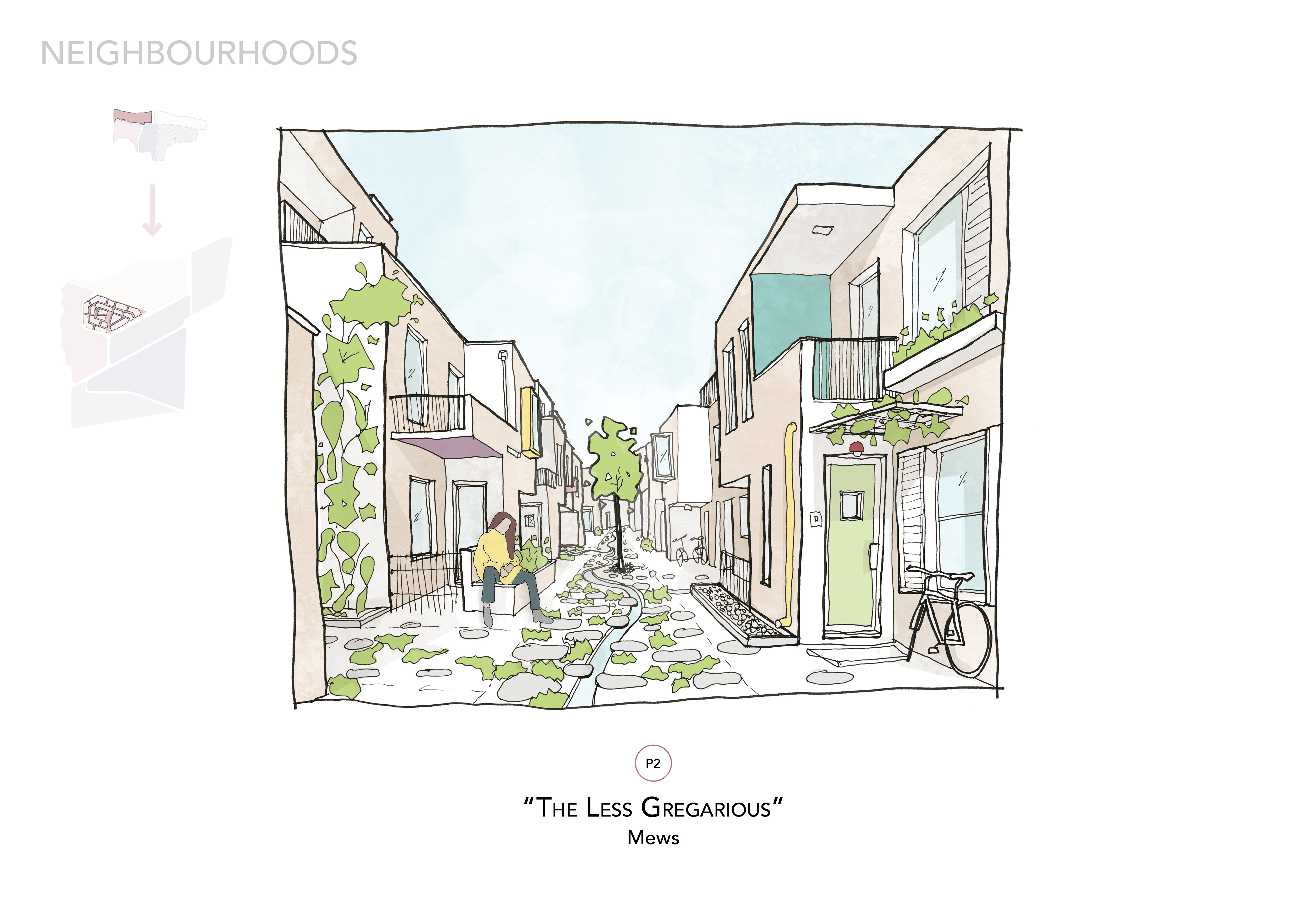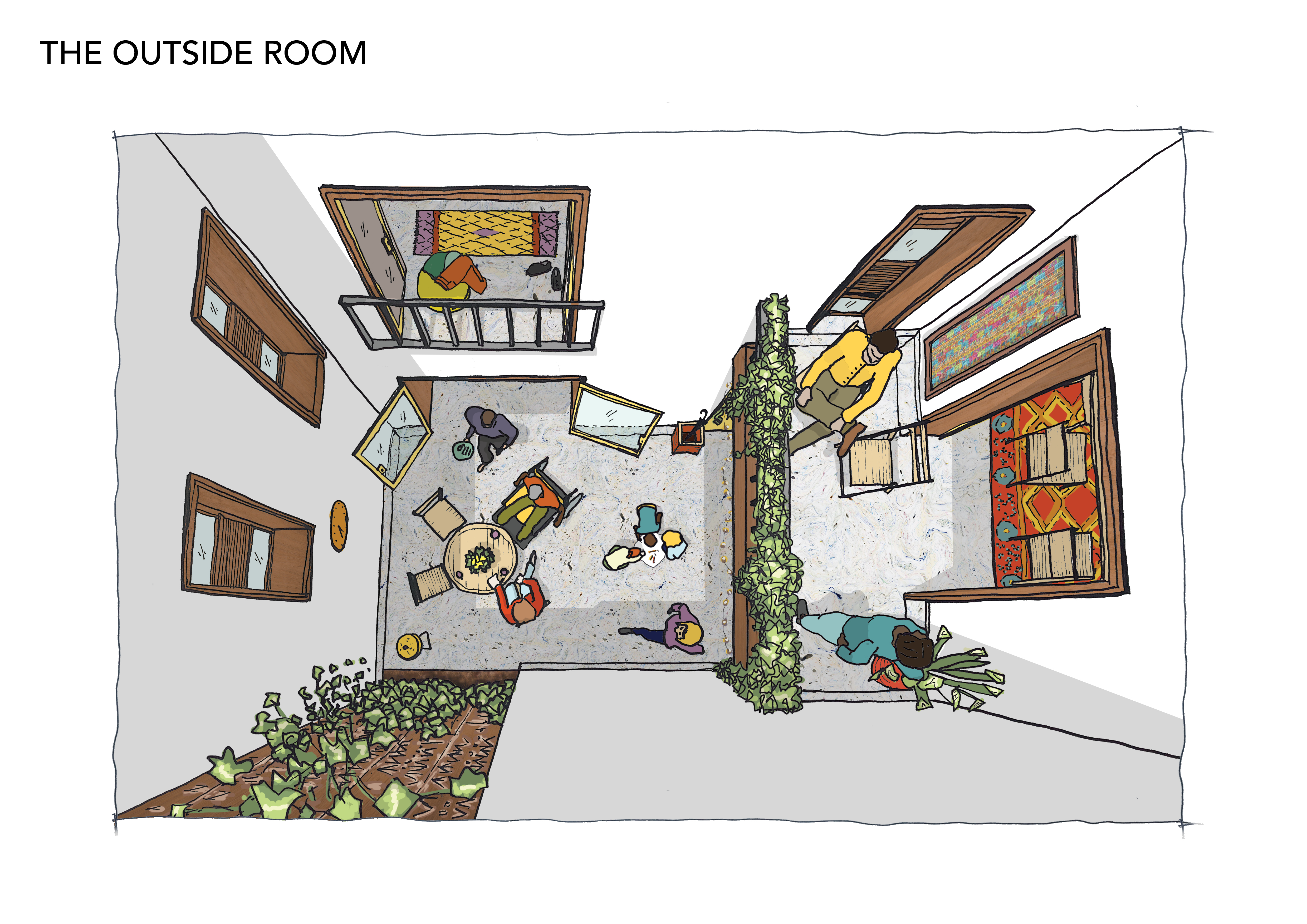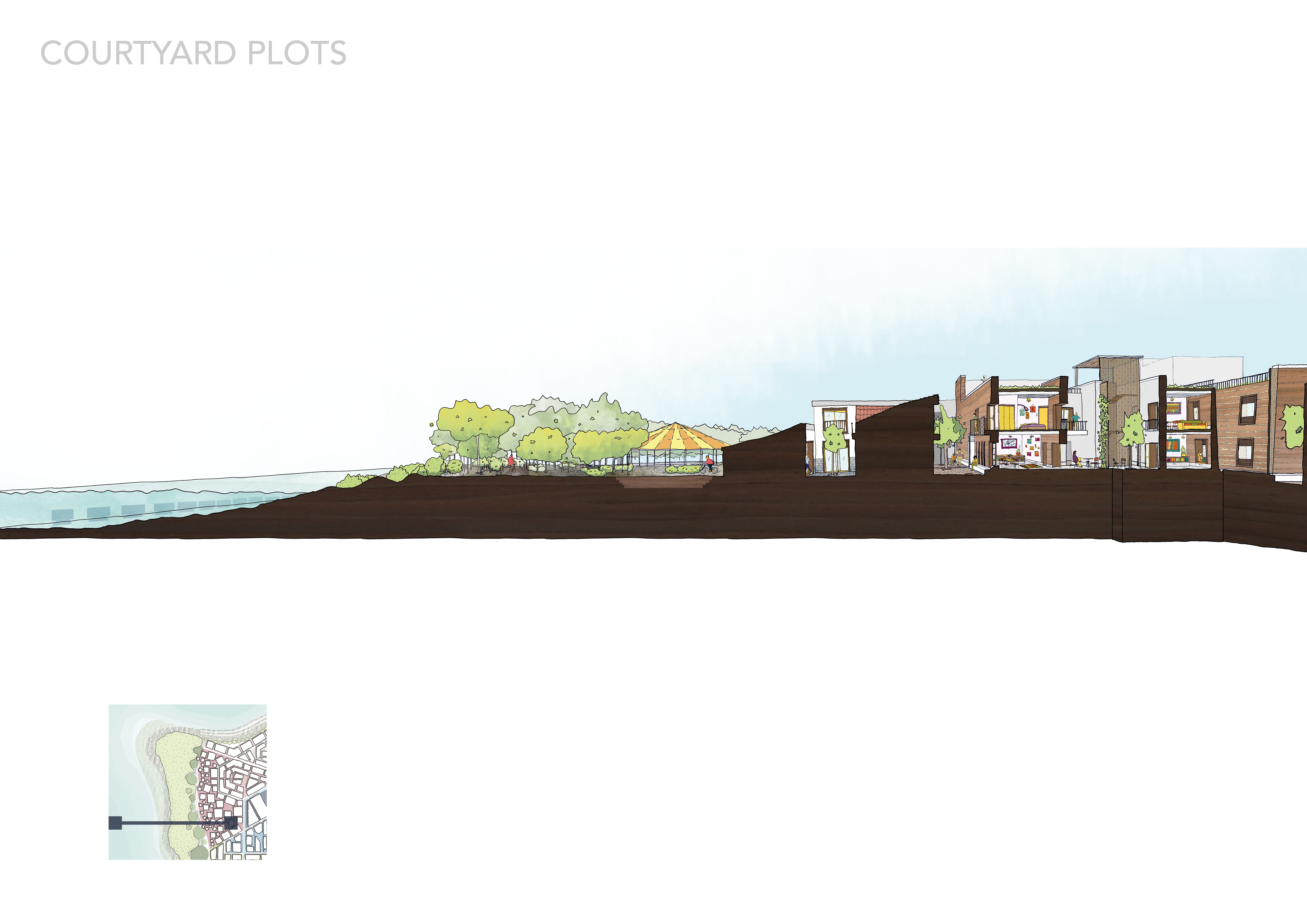 Within the masterplan, the focus is on the courtyard typology phase, ‘The Plots’. Following on from the urban grain, an irregular parcel geometry is used to create intimate and unique pockets of space between the built ordered forms. The irregularity of sizes encourages different forms and materials within the overall masterplan and lends itself to a diverse landscape, mirroring the ambience of an informal settlement.